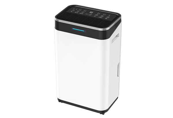 家用除濕機(jī)通過風(fēng)機(jī)將潮濕空氣抽入機(jī)器內(nèi)部,通過壓縮機(jī)制冷將蒸發(fā)器降溫至露點(diǎn)以下,潮濕空氣經(jīng)過蒸發(fā)器在表面凝結(jié)成水,匯集至接水盤后,流入水箱中,干爽空氣經(jīng)冷凝器重新加熱由出風(fēng)口排出,這樣不斷循環(huán)將室內(nèi)濕度降低。